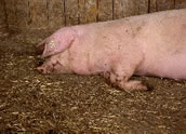 entspannte Schweine, wie man rechts sehen kann und 15 Kühe.